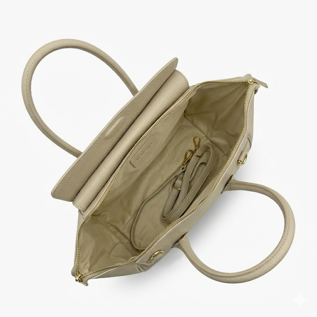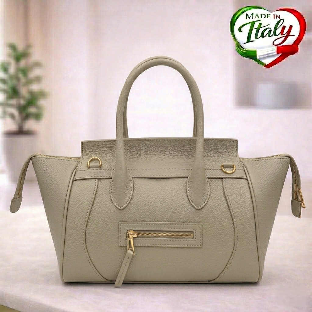 Елегантната дамска чанта Bellora е изработена от висококачествена естествена кожа, произведена в Италия – символ на стил, издръжливост и безкомпромисно качество. Фината текстура тип Dollar придава луксозен вид и устойчивост при ежедневна употреба.