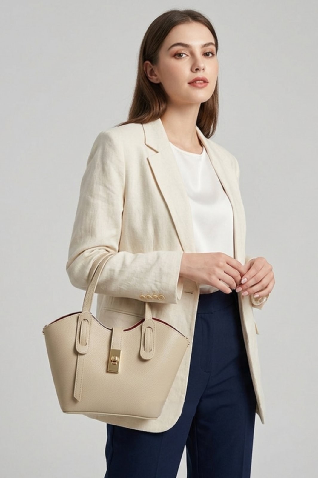 Моделът разполага с едно основно отделение с цип, което осигурява сигурност и удобство при съхранение на най-необходимите вещи. Златистите елементи добавят фин луксозен акцент и подчертават елегантния дизайн.