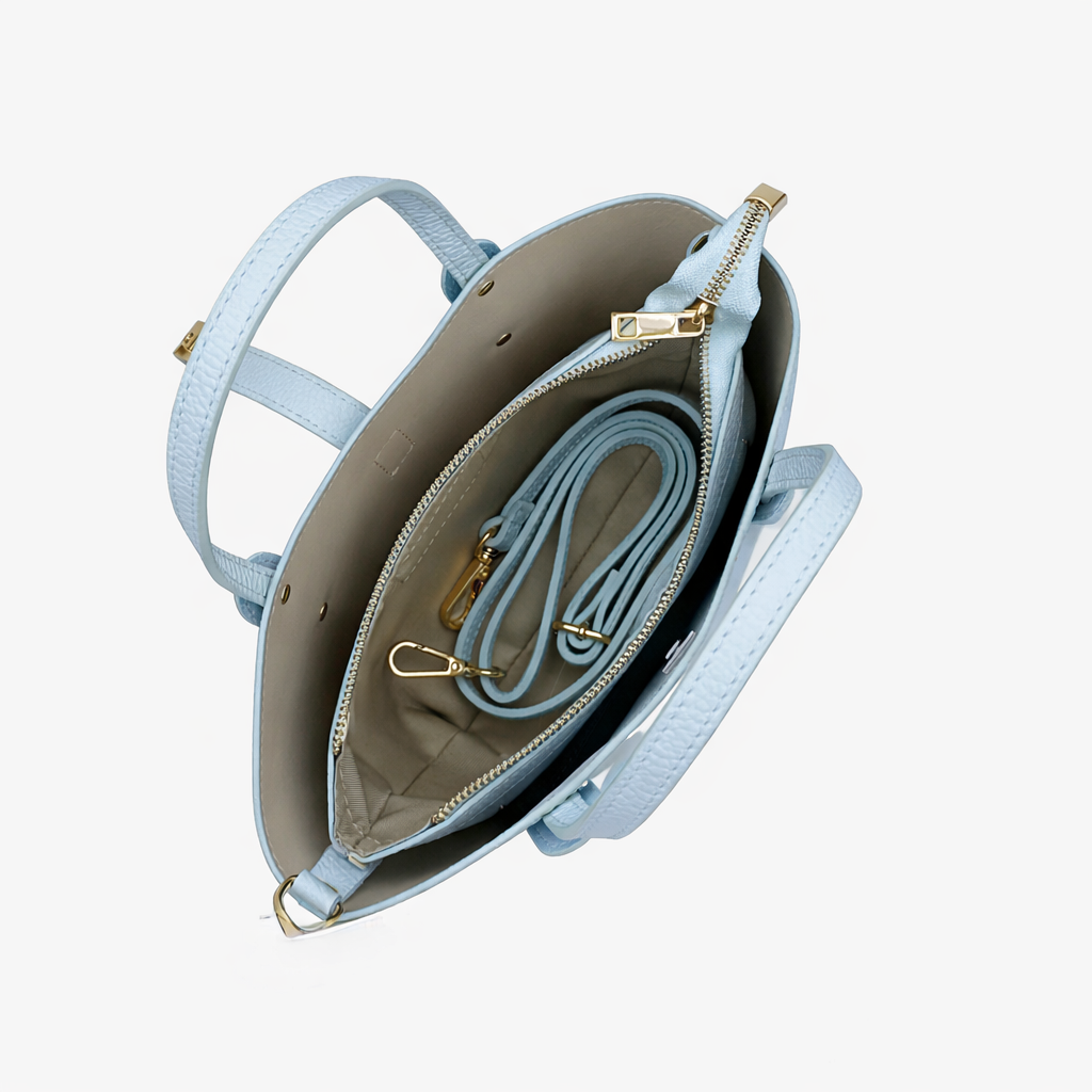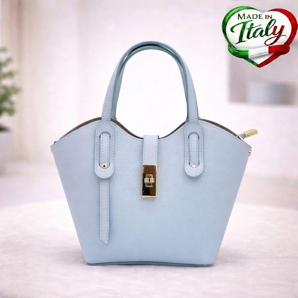 Чантата Caramella е стилен и кокетен модел, създаден специално за пролетно-летния сезон. Изработена от висококачествена естествена кожа тип Dollar, тя впечатлява със своята компактна форма и свеж син цвят, който придава лекота и модерно излъчване на всяка визия.