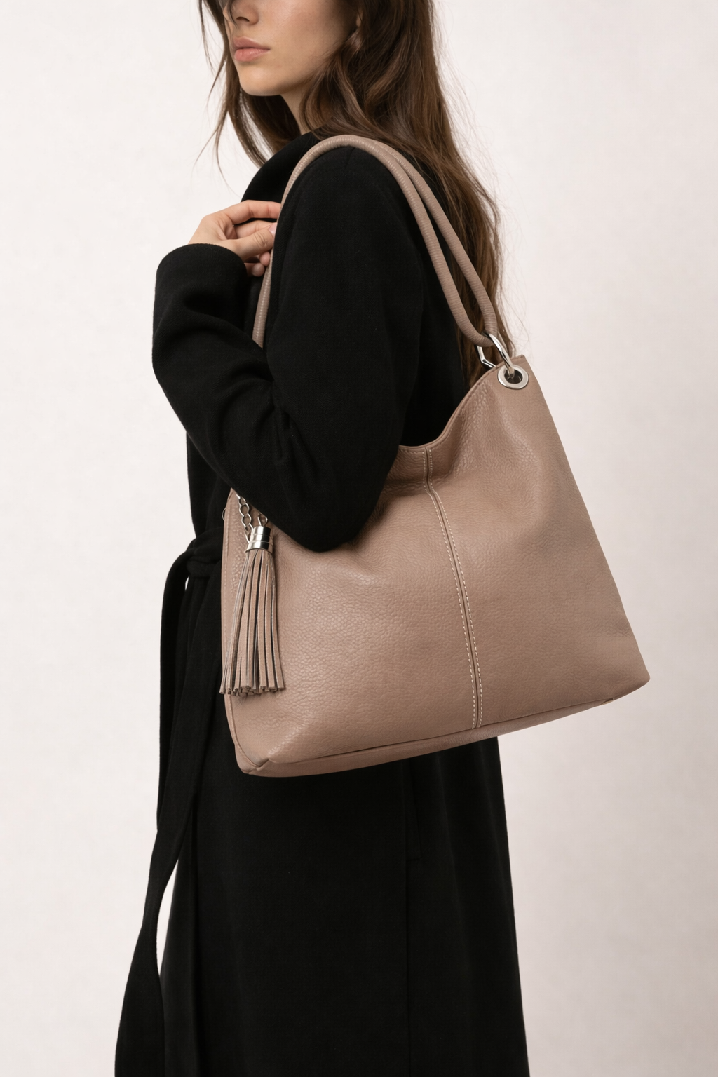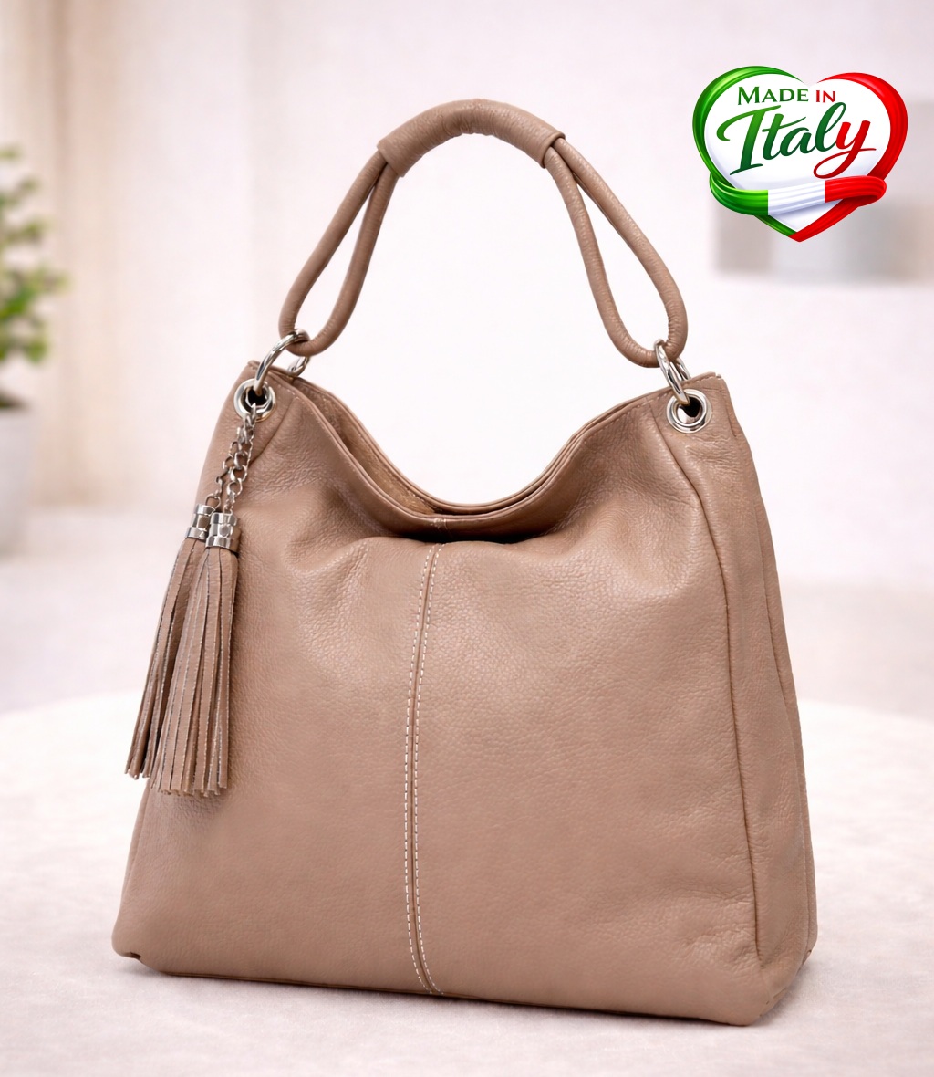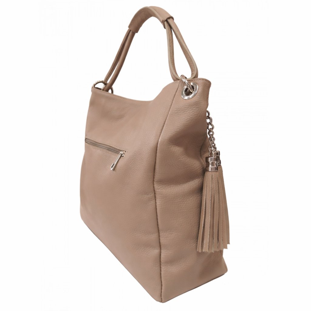 Чантата Fidelia е създадена за дамите, които ценят пространството, удобството и модерния италиански стил. Произведена в Италия, тя впечатлява с безупречна изработка, внимание към детайла и високо качество – отличителни черти на италианската мода. Изработена от 100% естествена кожа тип Dollar, моделът се отличава с нежния си цвят пудра и елегантно излъчване.