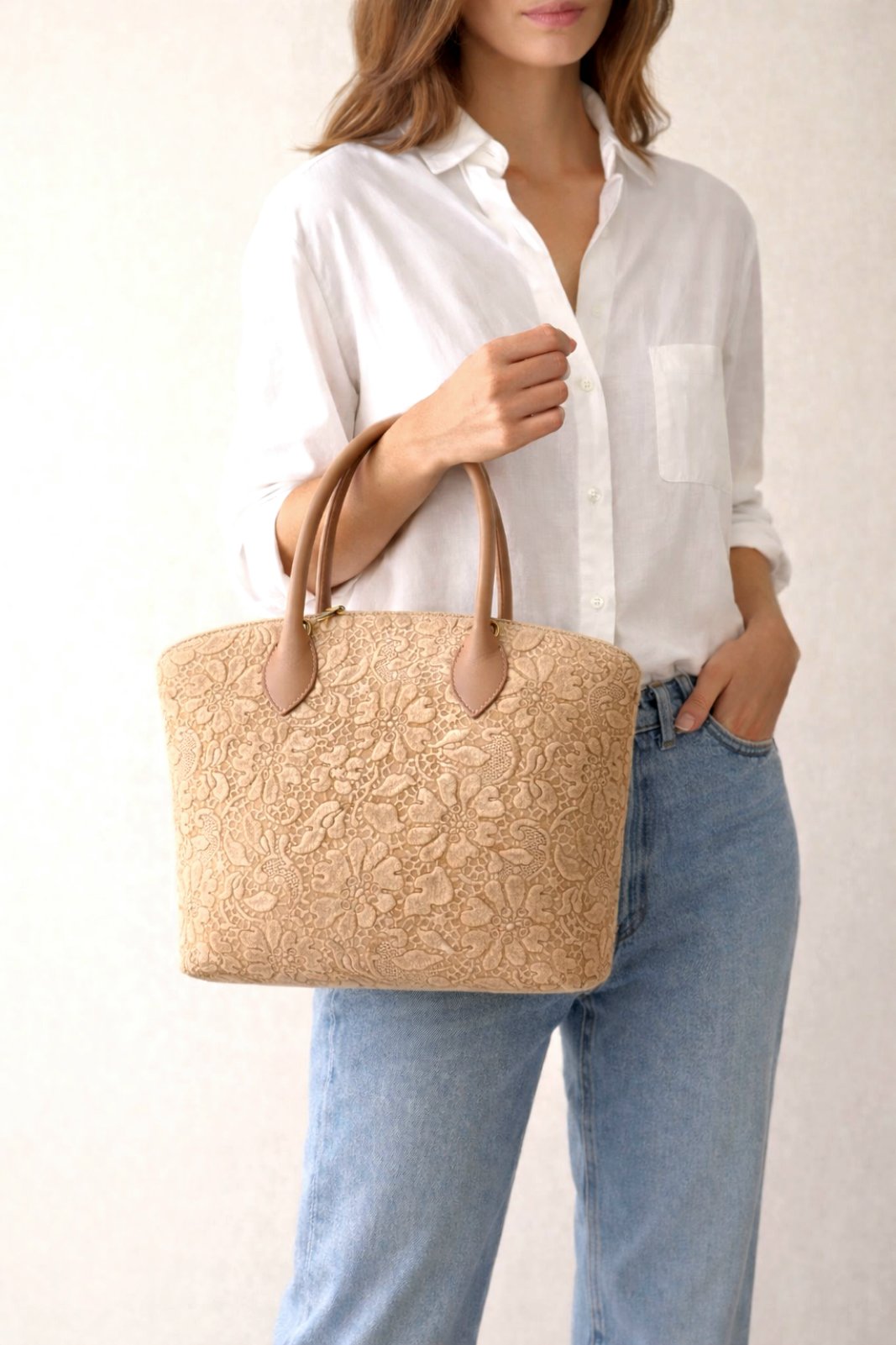 Моделът е снабден с дълга дръжка за удобно носене на рамо, което я прави идеален избор за динамичното ежедневие. Gentilla е перфектният аксесоар за дамите, които търсят комбинация от комфорт, функционалност и стил с фин артистичен детайл.