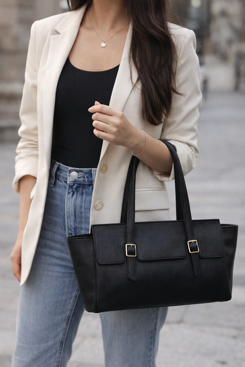 Предлага се в три универсални цвята – черен, бежов и коняк, лесни за съчетаване с всяка визия.