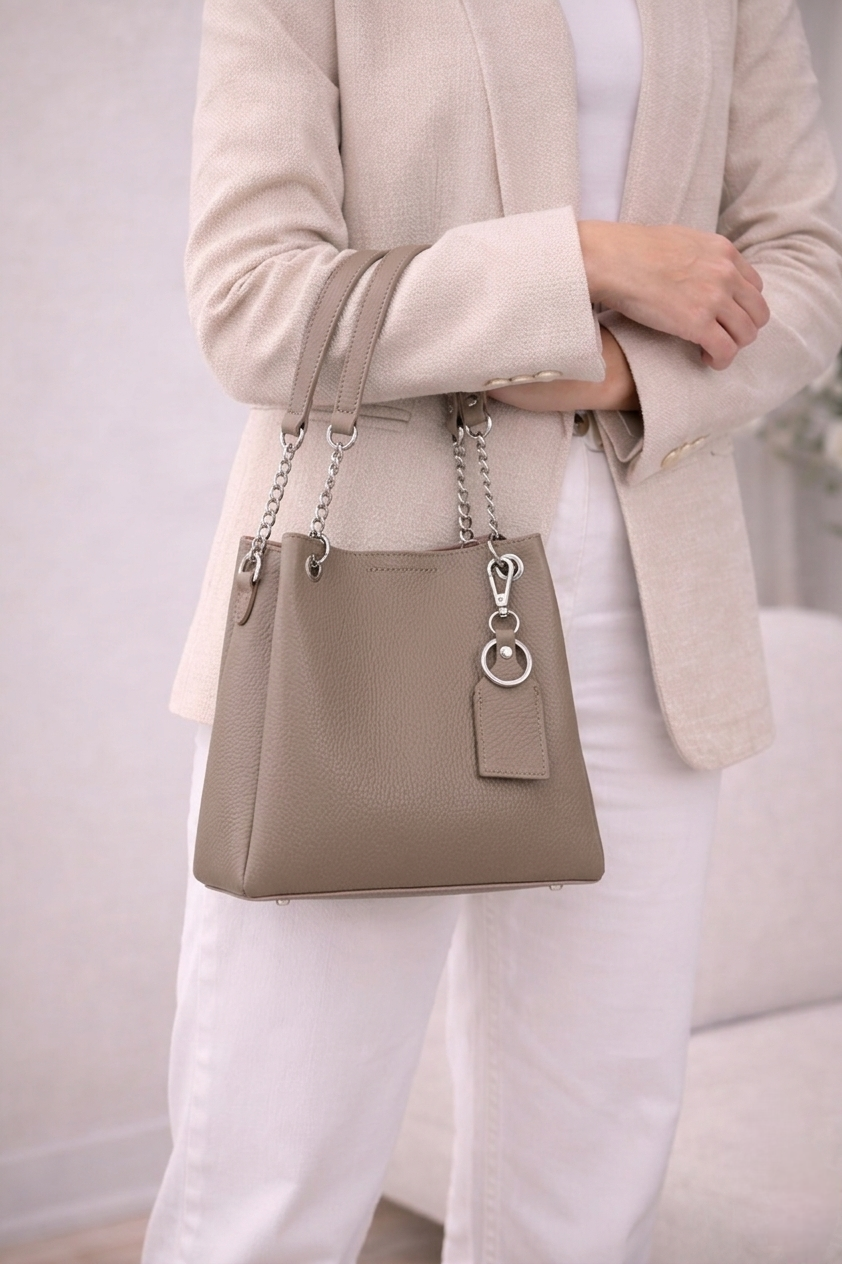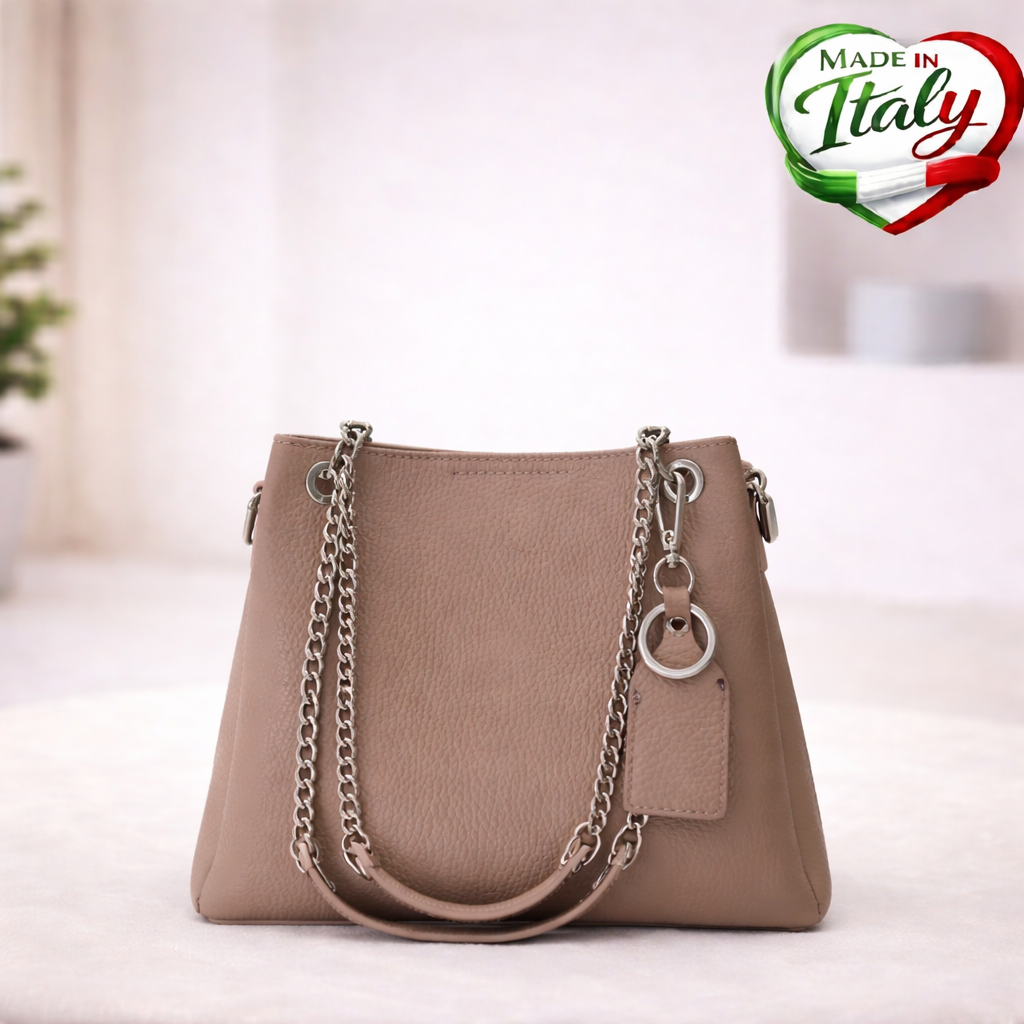Чантата Patrizia е изключително функционален и стилен модел, създаден с внимание към детайла и вдъхновен от класическия италиански дизайн. Произведена в Италия, тя носи усещане за качество, елегантност и прецизна изработка, характерни за италианската мода. Изработена от 100% естествена кожа тип Dollar, чантата впечатлява със своята изчистена визия и модерен цвят пудра.