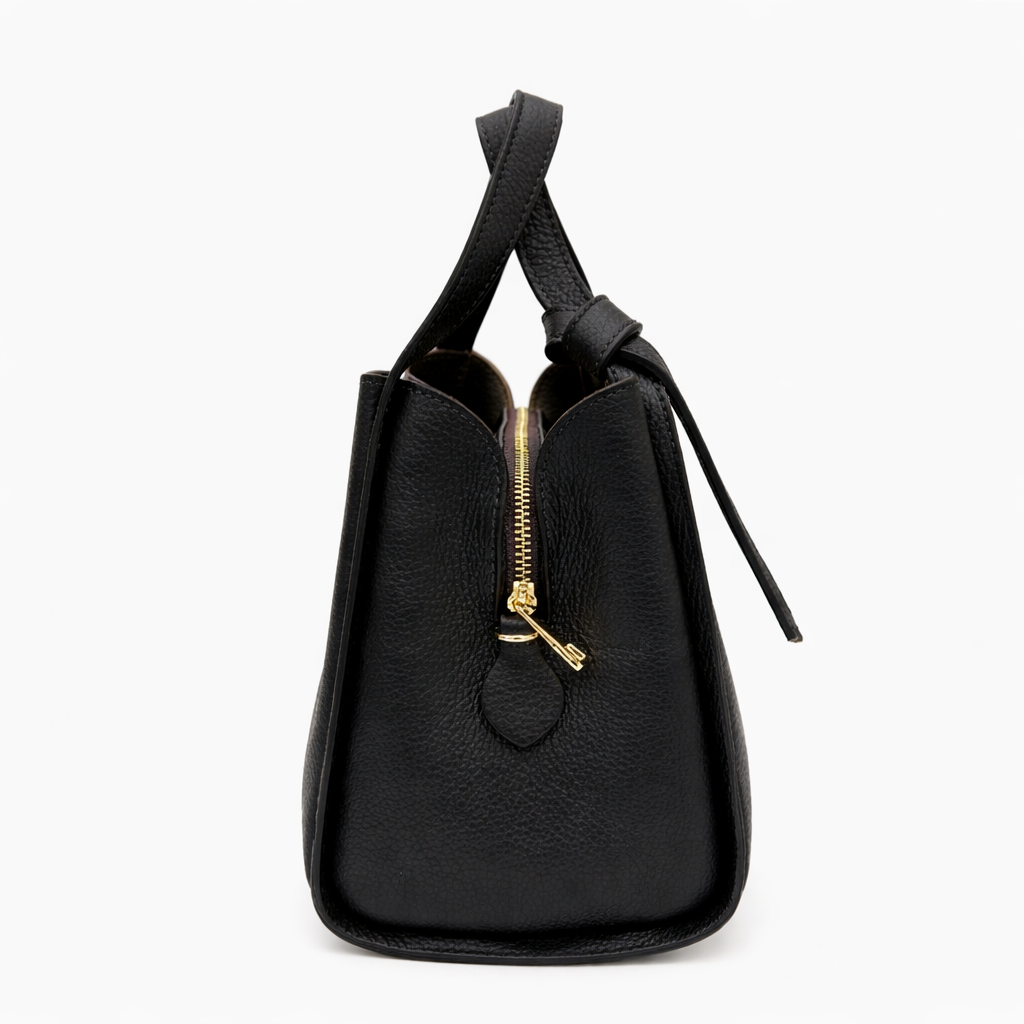 Чантата Teressa е елегантно и практично решение за динамичното ежедневие. Изработена от висококачествена естествена кожа тип Dollar, тя впечатлява със своята мека текстура и наситен черен цвят, който придава стил и увереност на всяка визия.