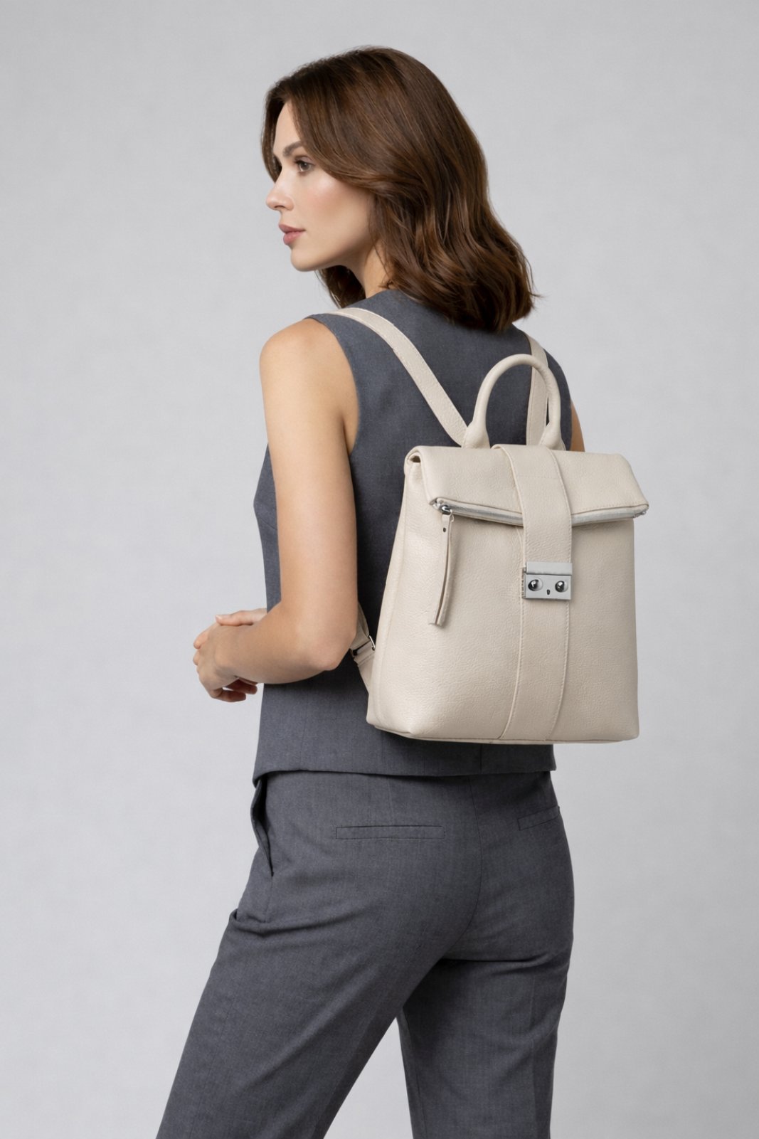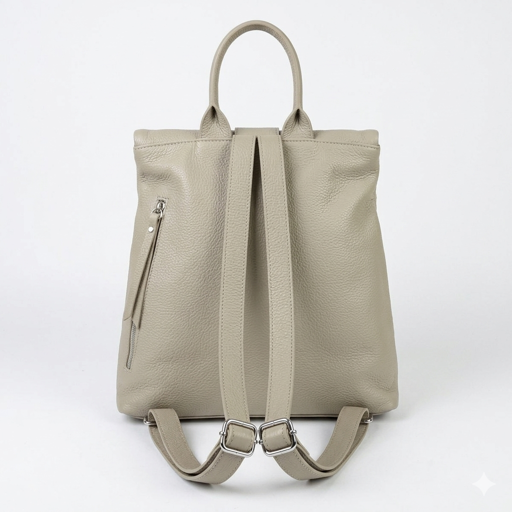 Раницата Burlesca е стилно и модерно решение за динамичното ежедневие, вдъхновено от автентичния италиански дизайн. Произведена в Италия, тя впечатлява с високото си качество, прецизната изработка и усещането за елегантност, характерни за италианската мода. Изработена от 100% естествена кожа тип Dollar, раницата се отличава със своята мека текстура и модерен бежов цвят.