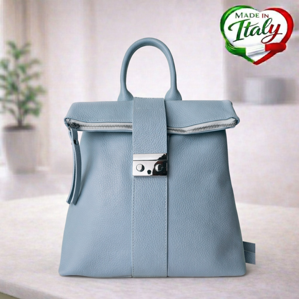 Раницата Burlesca е стилно и модерно решение за динамичното ежедневие, вдъхновено от автентичния италиански дизайн. Произведена в Италия, тя впечатлява с високото си качество, прецизната изработка и усещането за елегантност, характерни за италианската мода. Изработена от 100% естествена кожа тип Dollar, раницата се отличава със своята мека текстура и наситен син цвят.