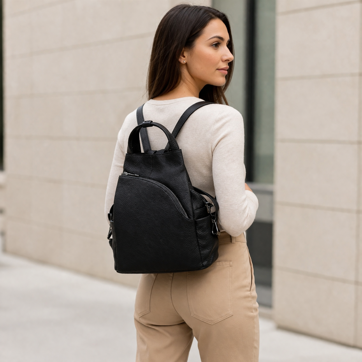 Раницата е изключително удобна за носене – както в ежедневието, така и при пътуване. Перфектен избор за модерната жена, която цени италианското производство, функционалността и стилния външен вид.