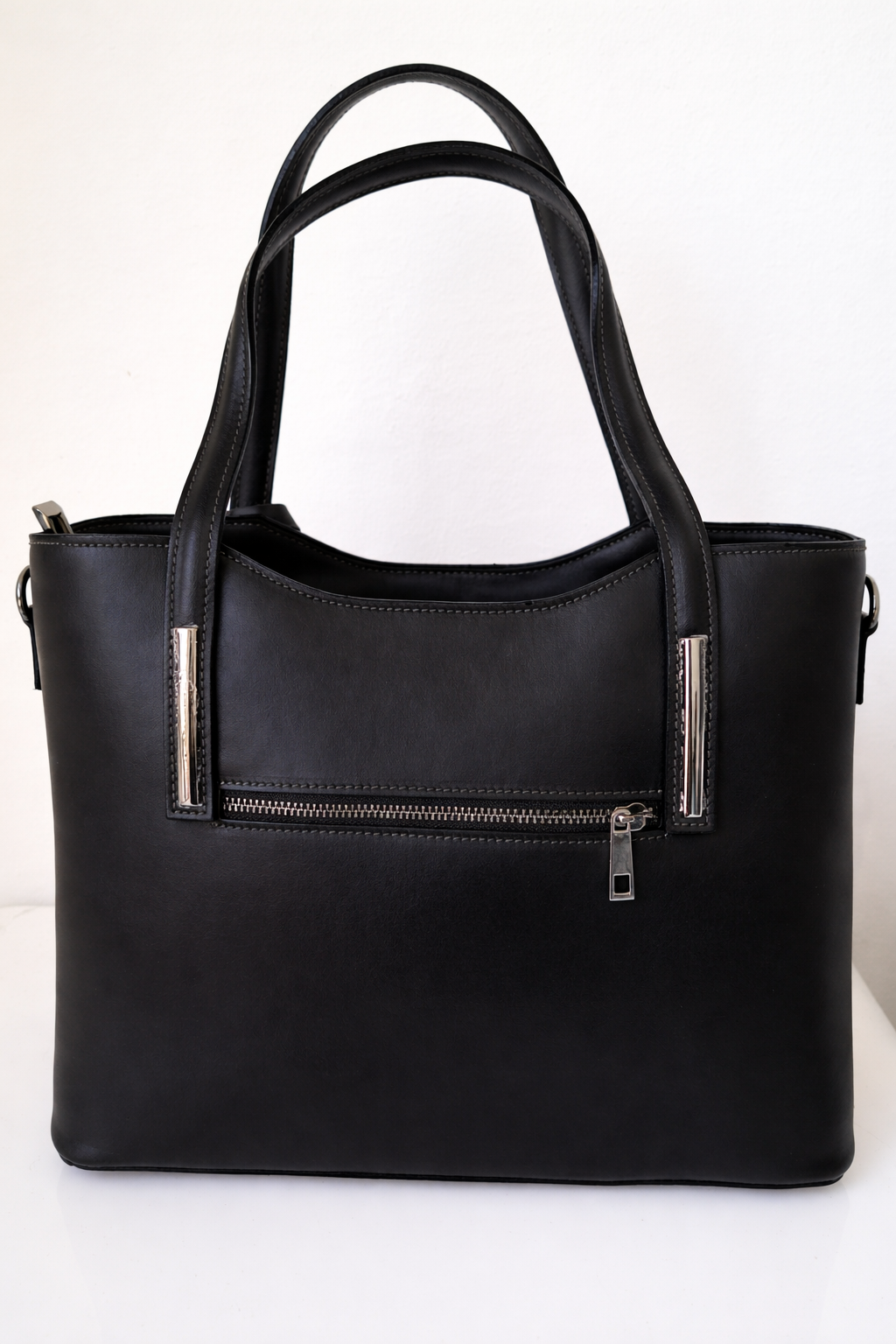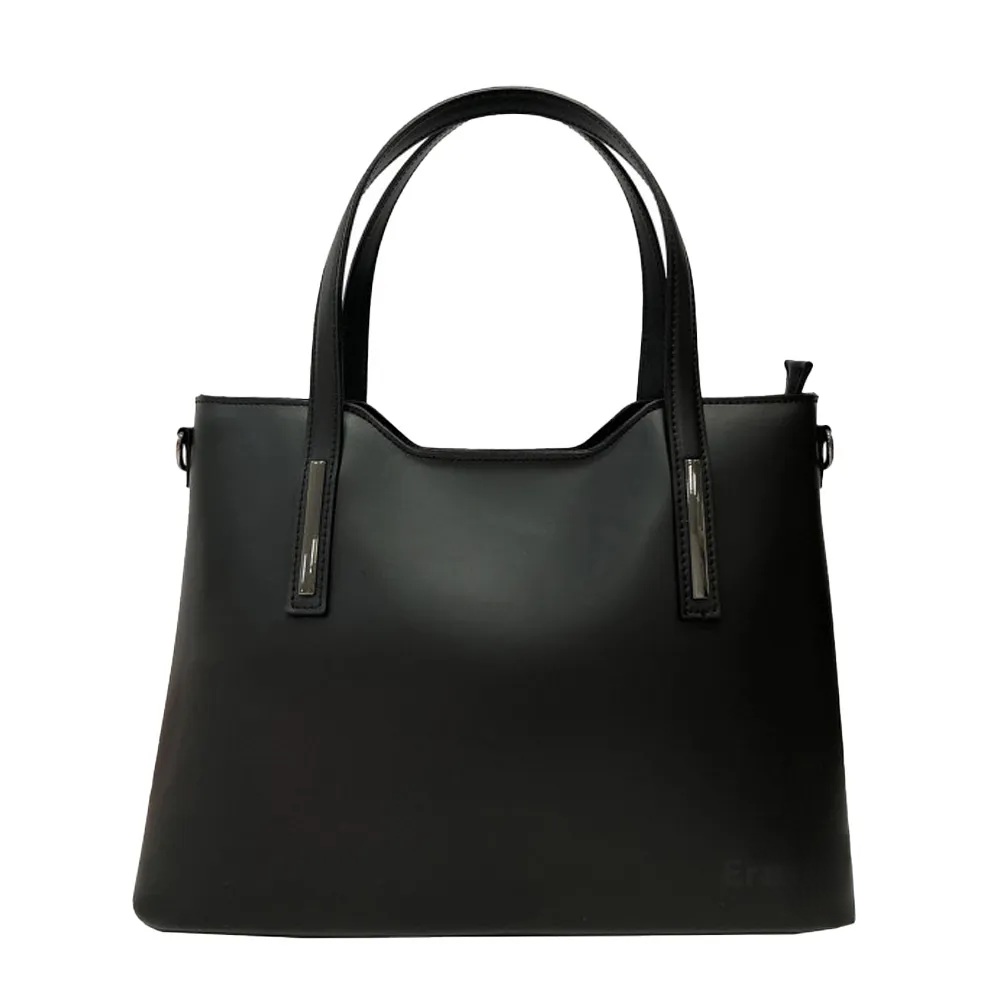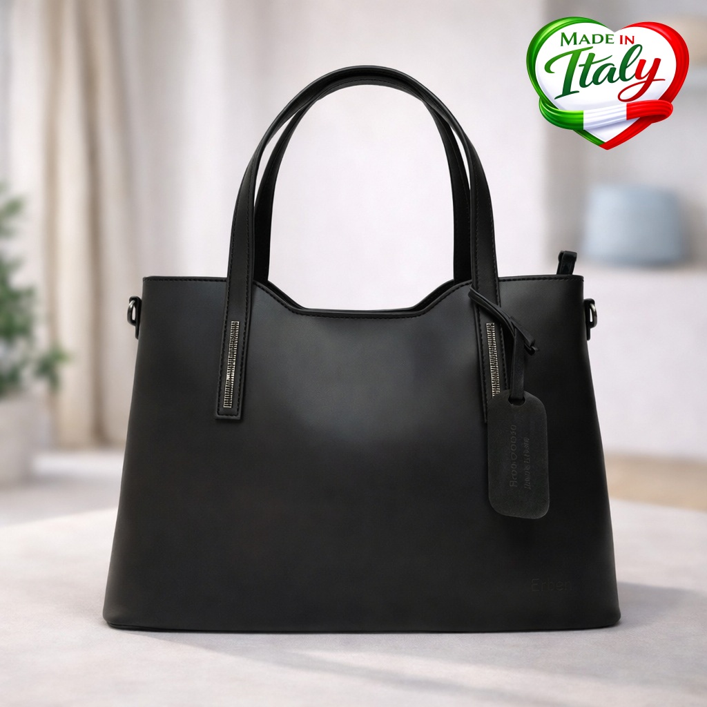 Елегантна дамска чанта в класически черен цвят, изработена от естествена телешка кожа, създадена в Италия от ръцете на фиорентинските майстори, известни със своята традиция, майсторство и внимание към всеки детайл. Моделът съчетава класическа визия, качество и функционалност.