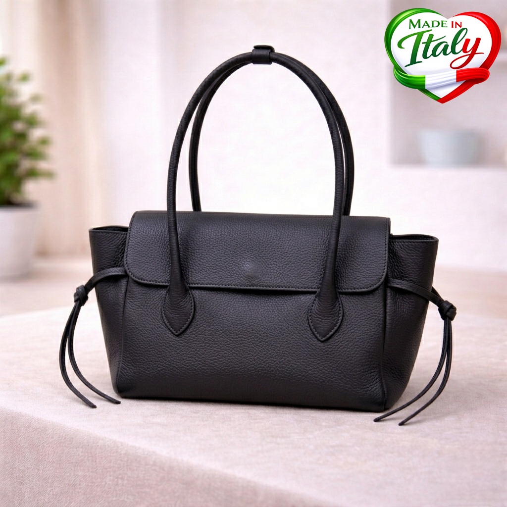 Елегантна дамска чанта от естествена кожа, произведена в Италия – символ на стил, качество и изтънчен вкус. Изработена от мека и висококачествена кожа, тя впечатлява със своята издръжливост и луксозно усещане при допир.