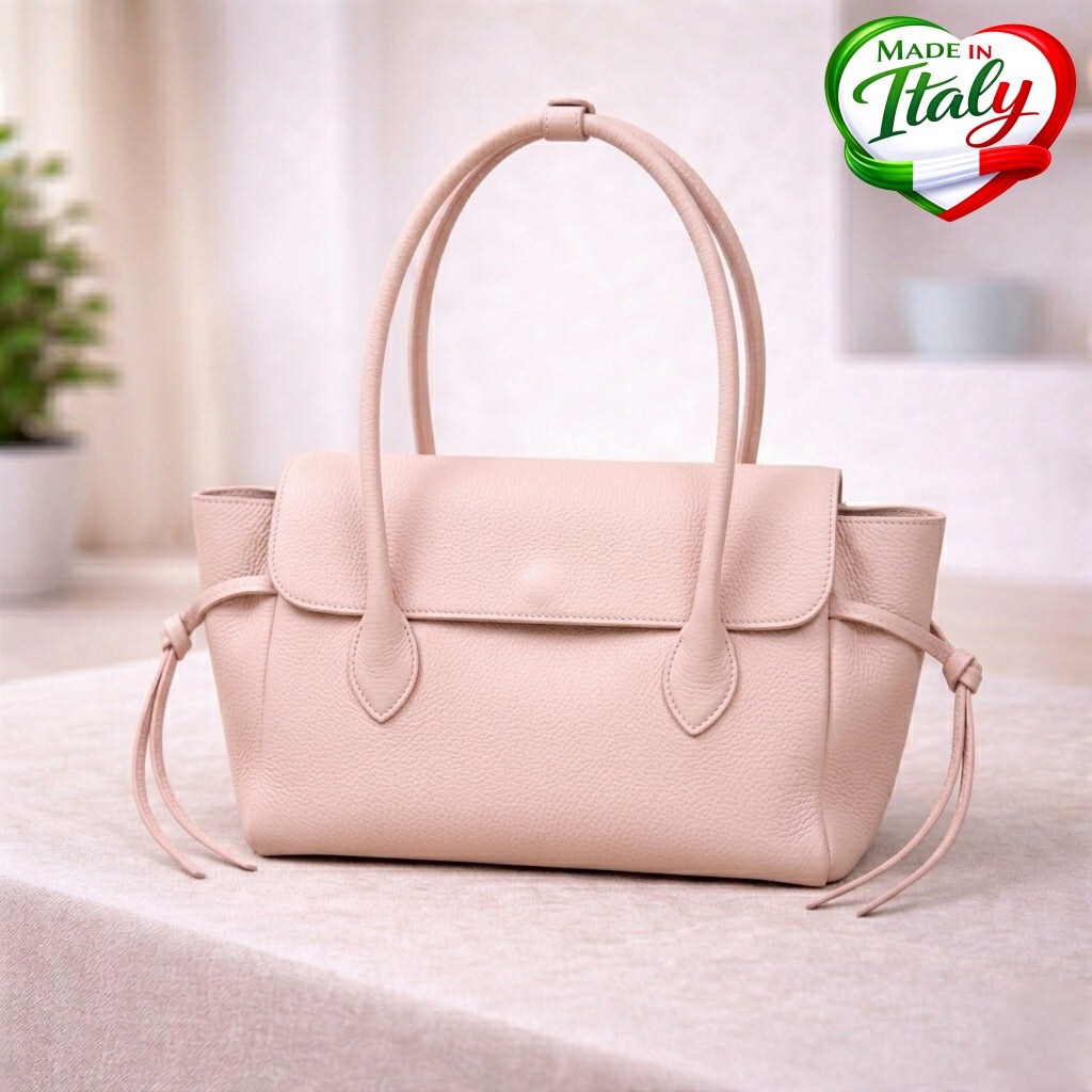Елегантна дамска чанта от естествена кожа, произведена в Италия – символ на стил, качество и изтънчен вкус. Изработена от мека и висококачествена кожа, тя впечатлява със своята издръжливост и луксозно усещане при допир.