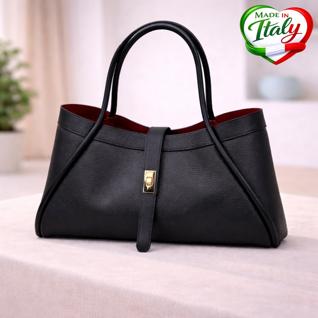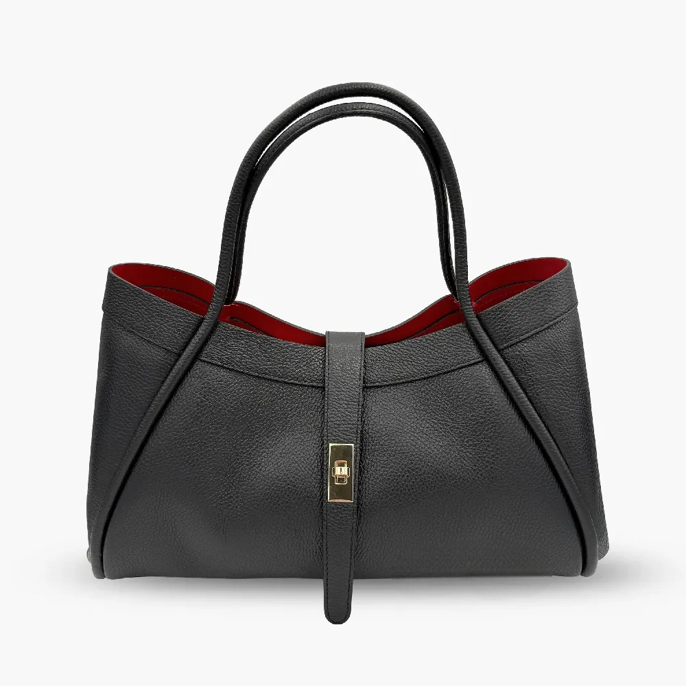 Елегантна дамска чанта модел Montelli в класически червен  цвят, изработена от естествена висококачествена италианска кожа тип Dollar, произведена в Италия. Моделът е с размер 38 × 22.5 × 21.5 см и разполага с едно просторно основно отделение, което осигурява достатъчно място за ежедневните ви вещи.